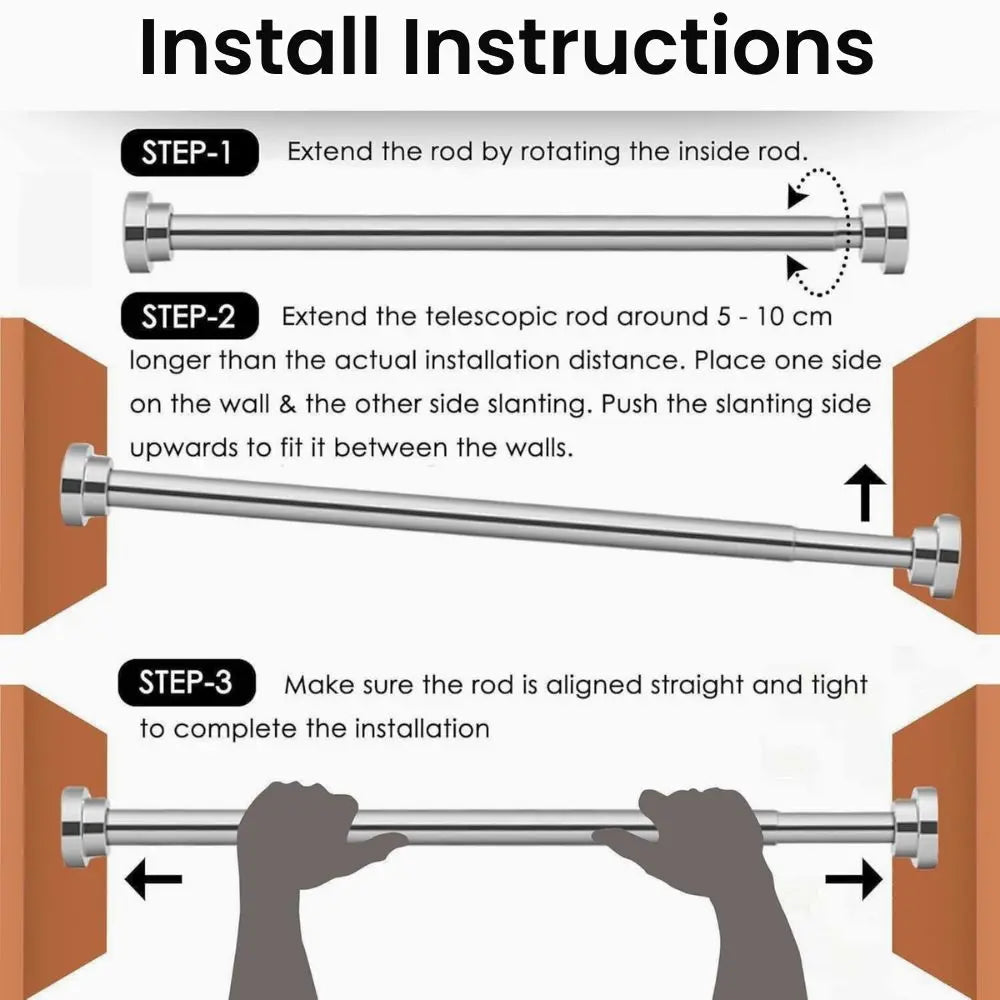 🛠️ Drill-Free Adjustable Rod – Strong Hold, Zero Damage!